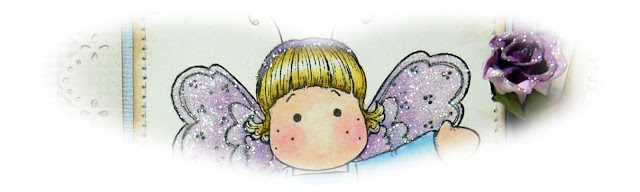 Für meine Karte habe ich ein Magnoliamotiv von der letzten Frühjahrkollektion "Happy Spring" koloriert .Ich liebe diese Schmetterlingstilda .Die Flügel das Haarband und die Rosenknospe habe ich noch ein wenig beglittert.