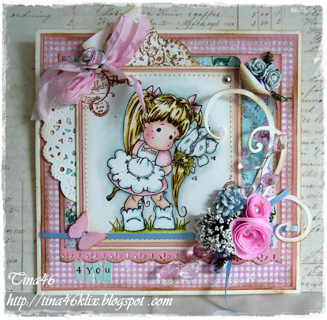 Meine Karte habe ich mit der süßen Tilda with Love und Magnolia Design Papier gestaltet.Koloriert habe ich mit Distress Makern auf Canson Papier.